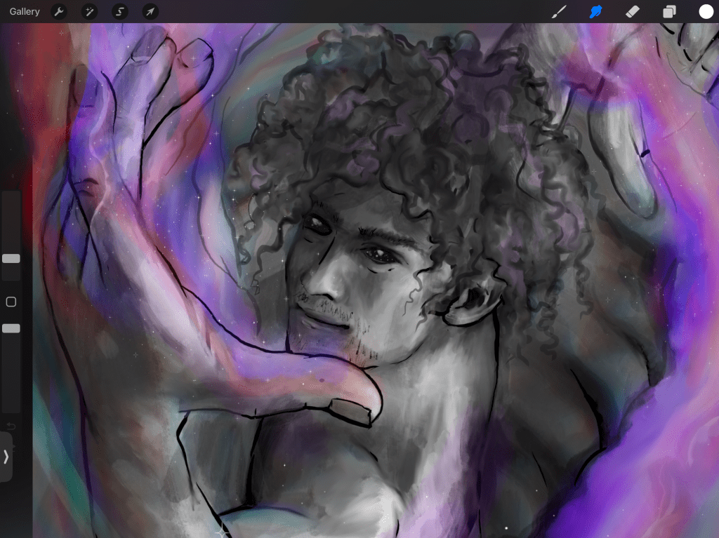 Deciding that, sometimes, “unfinished” is rather glorious. This is a drawing of Cedric from the Ethereal series, during one of his performances.